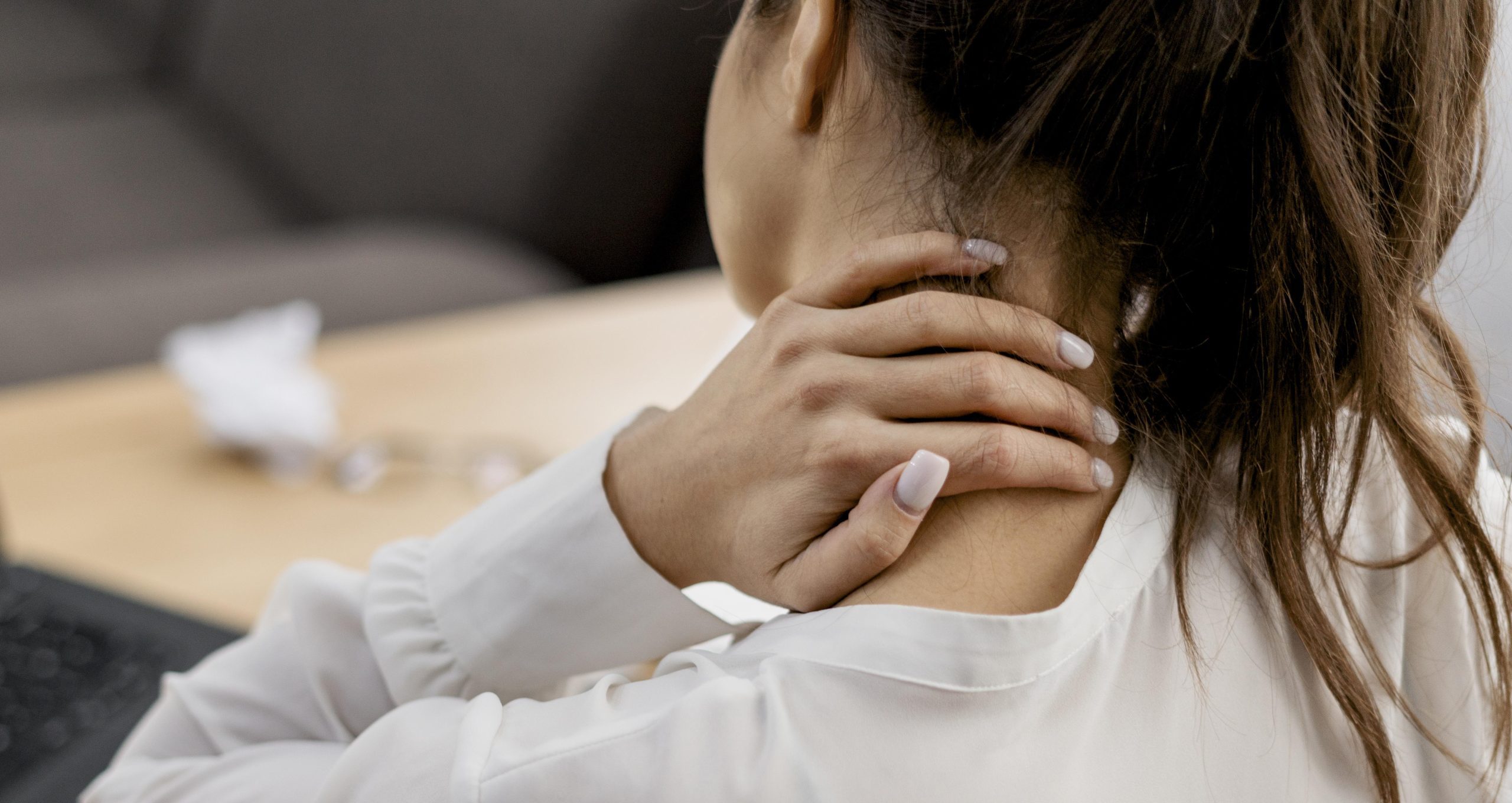 Lo más habitual es dolor o rigidez en cuello y nuca, sensación de “cabeza pesada”, tensión que sube hacia la base del cráneo o baja a trapecios y hombros, y mayor cansancio al final del día. Algunas personas refieren cefaleas tensionales o mareos leves al mover el cuello rápido. Si aparecen hormigueos, pérdida de fuerza o dolor que se irradia por el brazo, es importante una evaluación clínica para descartar compromiso neurológico.