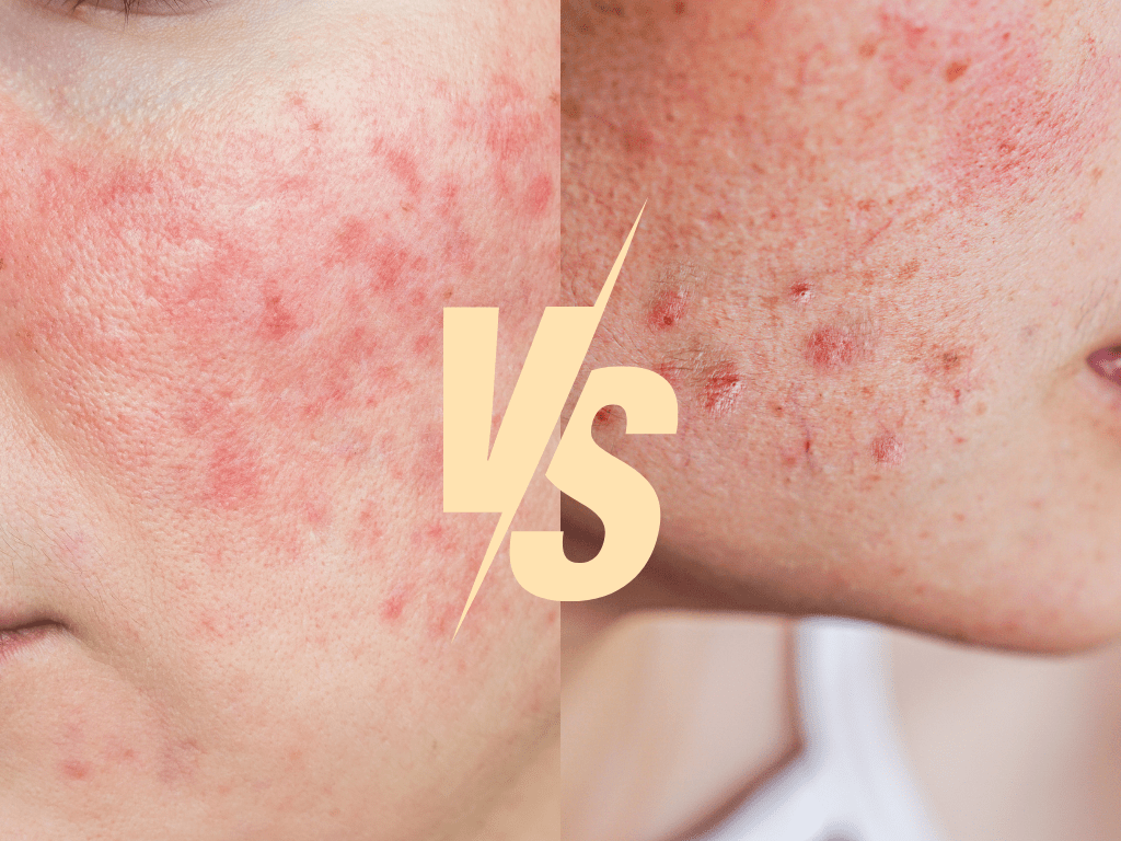 -Enrojecimiento: Si tu piel está permanentemente enrojecida o notas que se te sonroja con facilidad, podrías estar lidiando con rosácea. El acné solo muestra enrojecimiento alrededor de las lesiones inflamatorias (es decir, acné). Si experimentas enrojecimiento donde no hay acné, es rosácea.